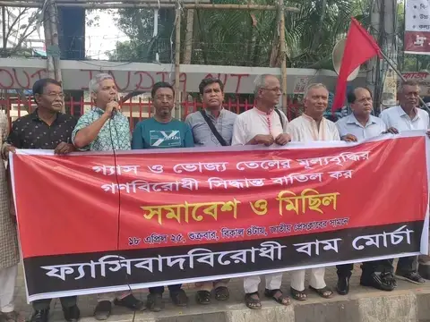 সয়াবিন তেলের মূল্য লিটারপ্রতি ১৪ টাকা ও নতুন শিল্পে গ্যাসের দাম ৩৩ শতাংশ বৃদ্ধির সরকারের গণবিরোধী-অযৌক্তিক সিদ্ধান্তের তীব্র নিন্দা ও প্রতিবাদ জানিয়েছে ফ্যাসিবাদবিরোধী বাম মোর্চা।