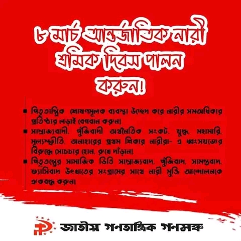 ৮ মার্চ আন্তর্জাতিক নারী শ্রমিক দিবস পালন করুন!