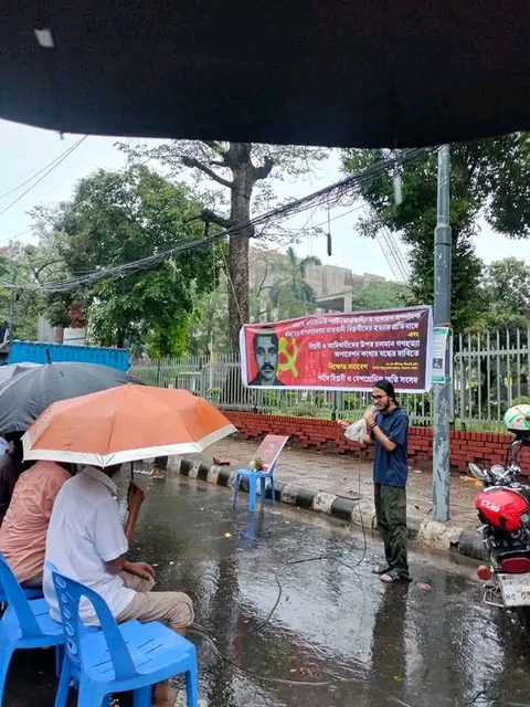 প্রবল বৃষ্টির মধ্যেই ভারতের কমিউনিস্ট পার্টি (মাওবাদী)-র সম্পাদক কমরেড বাসবরাজসহ ২৮ জন কমরেডের হত্যার প্রতিবাদে এবং হিন্দুত্ববাদী ফ্যাসিস্ট মোদি সরকার পরিচালিত অপারেশন কাগারের নামে ভারত রাষ্ট্রের গণহত্যা বন্ধের দাবিতে আজ জাতীয় যাদুঘর শাহবাগের সামনে বিক্ষোভ সমাবেশ অনুষ্ঠিত হয়।