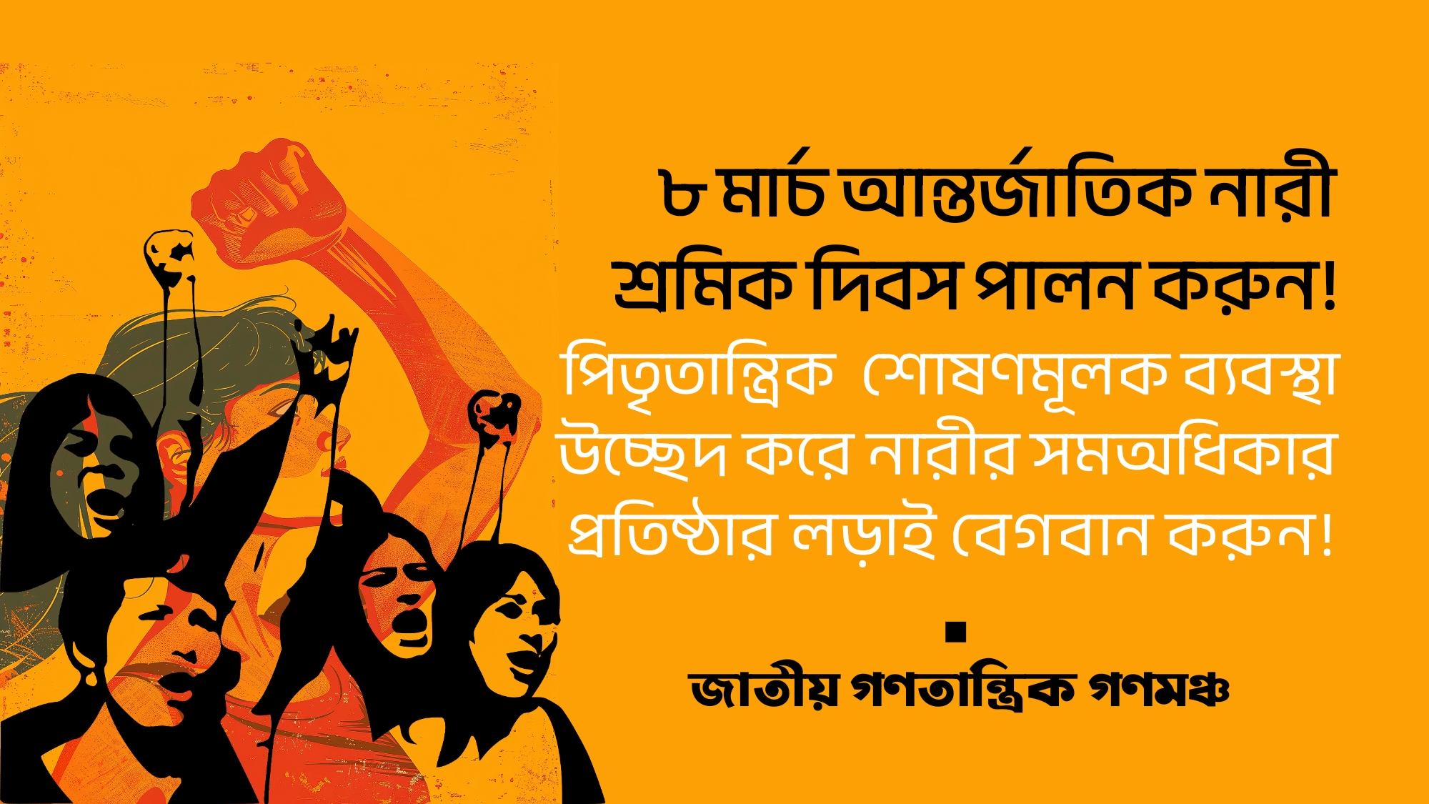 পিতৃতান্ত্রিক শোষণমূলক ব্যবস্থা উচ্ছেদ করে নারীর সমঅধিকার প্রতিষ্ঠার লড়াই বেগবান করুন!!
